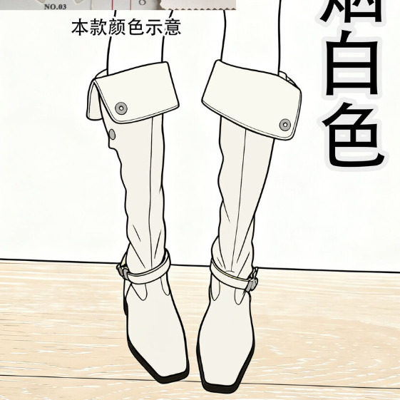• 折り返しロングブーツ:ホワイト(60cm,SD17対応)