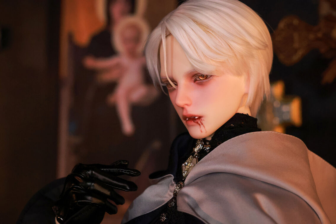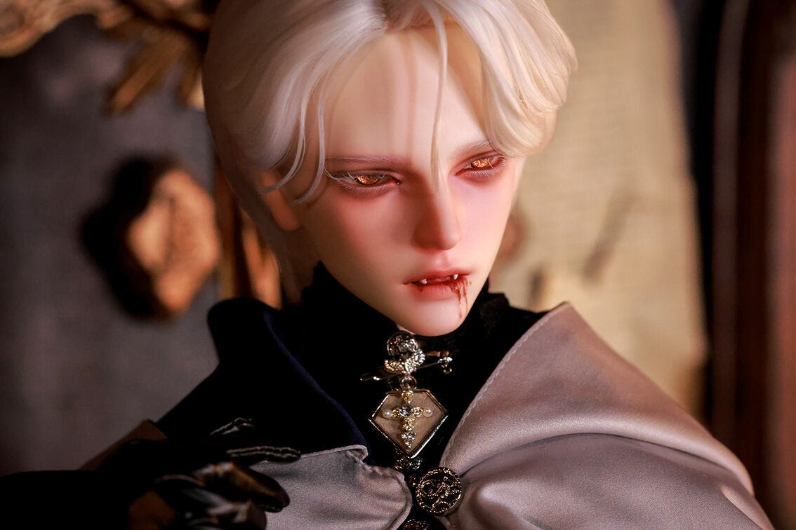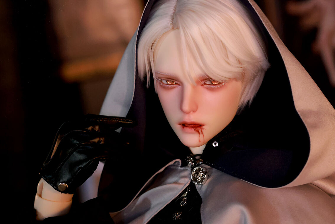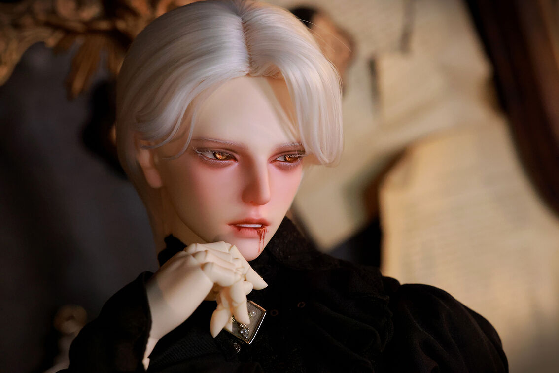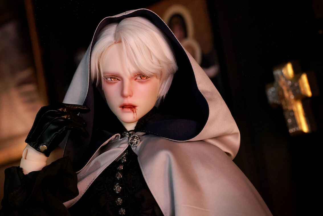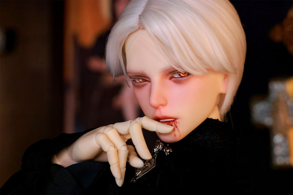 本コラボレーションでは「吸血鬼」をテーマに、尋簡(Xunjian)の持つ端正な造形を、凄艶な姿へと生まれ変わらせました。吸い込まれるような鋭い視線や、人ならざるものを感じさせる神秘的な肌質感。細部に至るまで荒浍氏の美意識が宿る、芸術的な仕上がりを楽しめます。