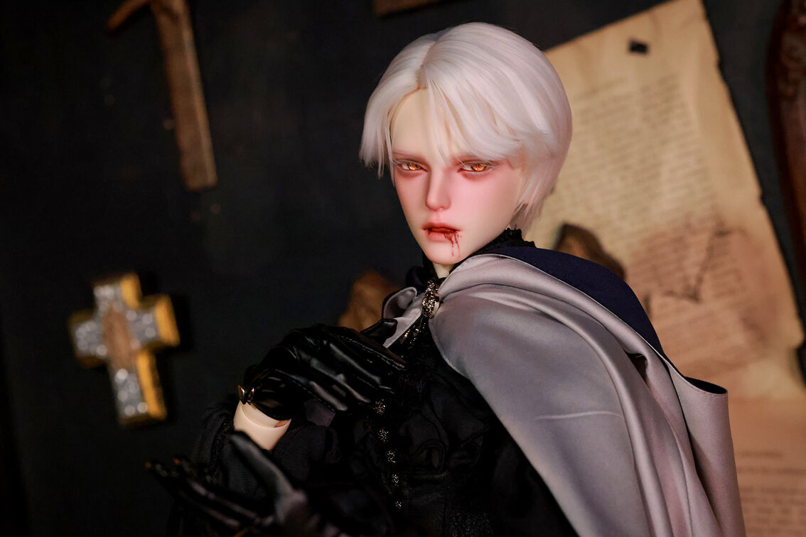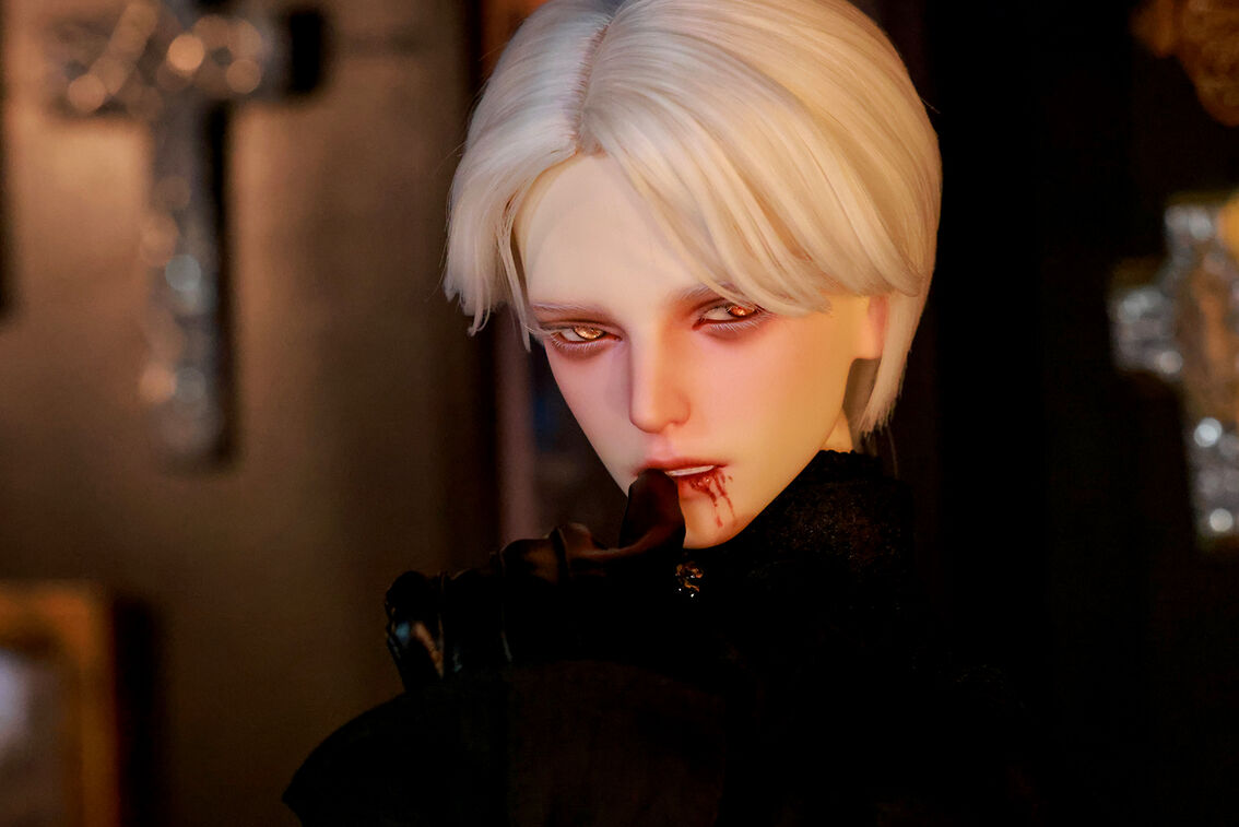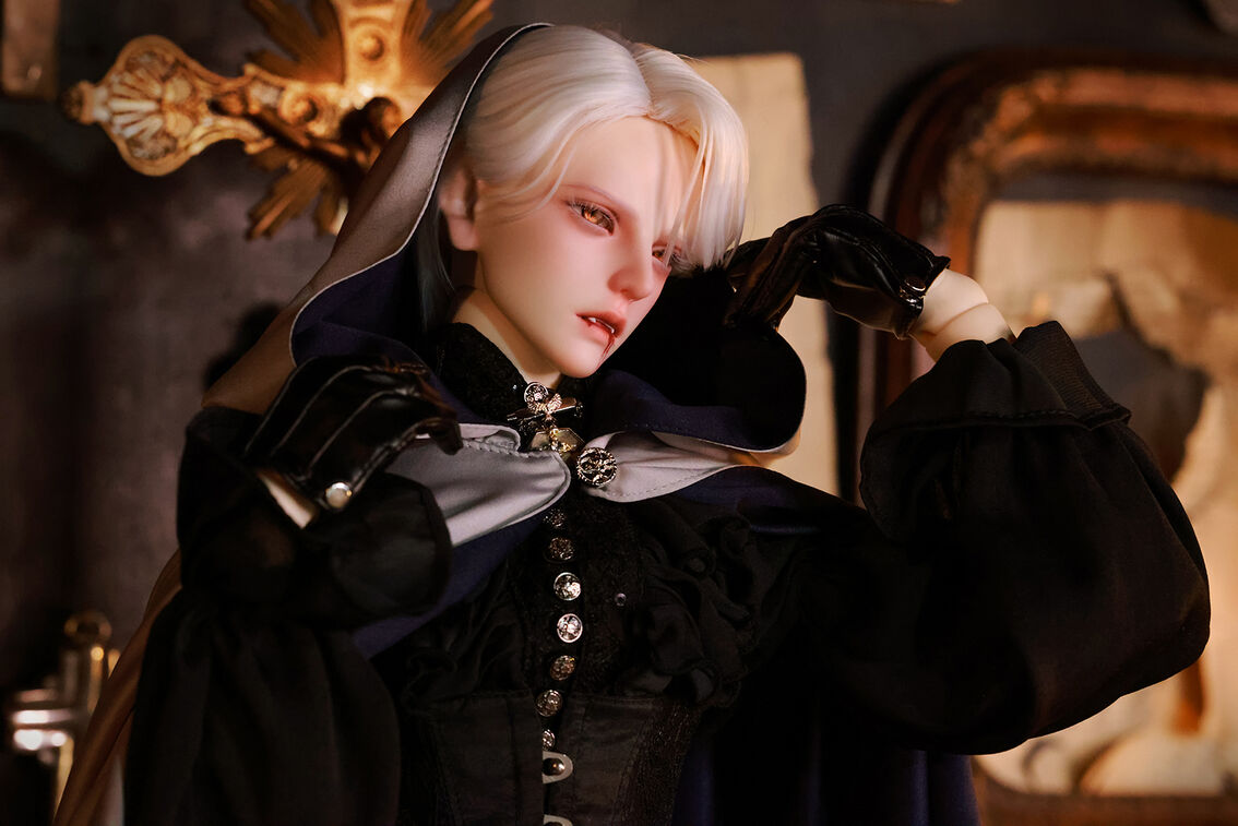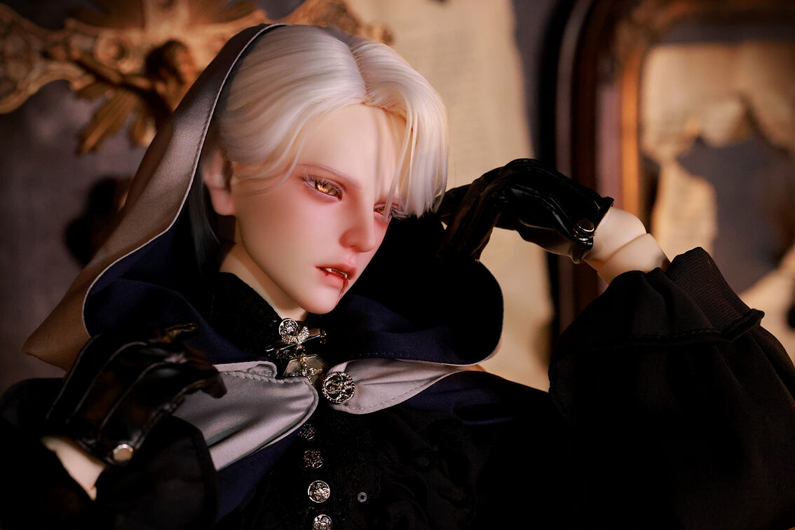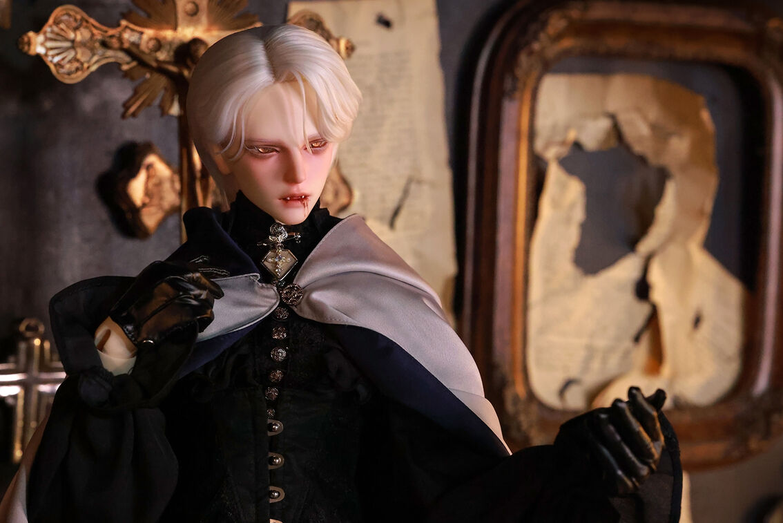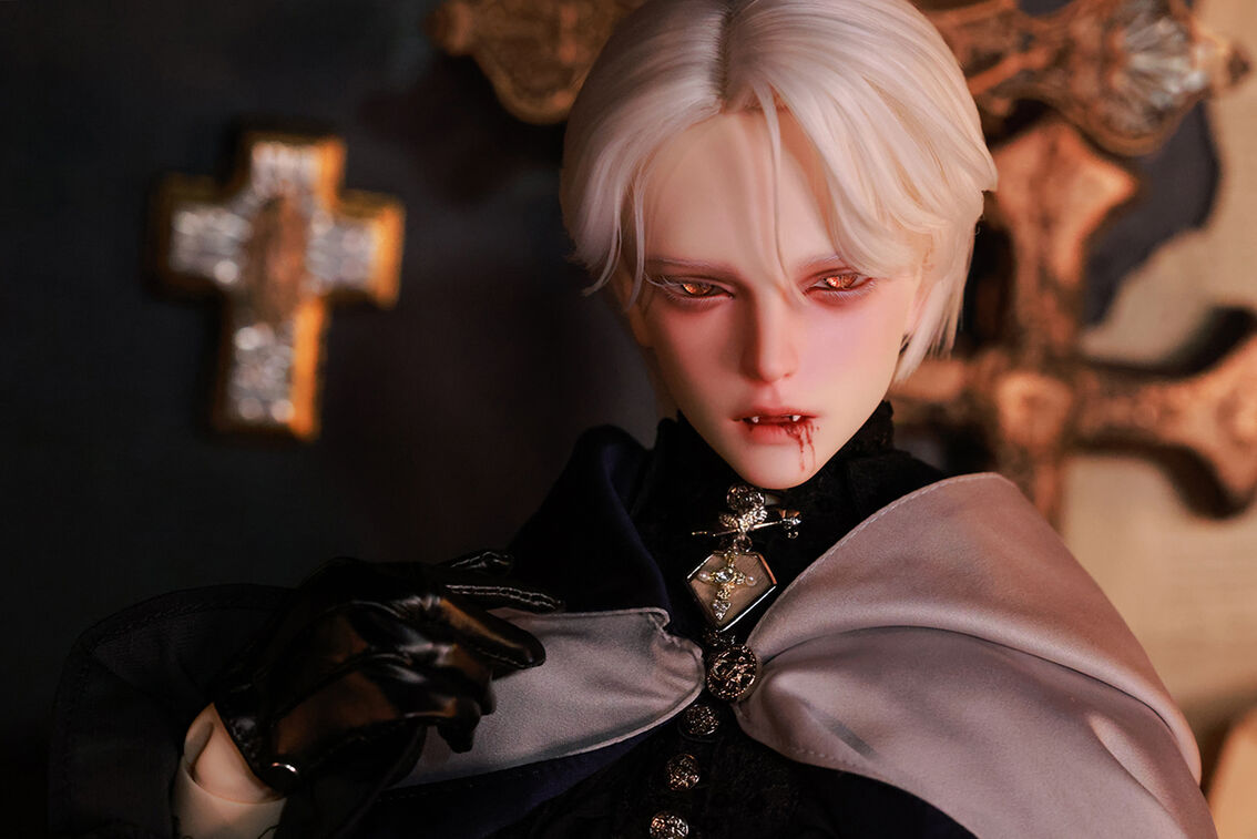 本コラボレーションでは「吸血鬼」をテーマに、尋簡(Xunjian)の持つ端正な造形を、凄艶な姿へと生まれ変わらせました。吸い込まれるような鋭い視線や、人ならざるものを感じさせる神秘的な肌質感。細部に至るまで荒浍氏の美意識が宿る、芸術的な仕上がりを楽しめます。