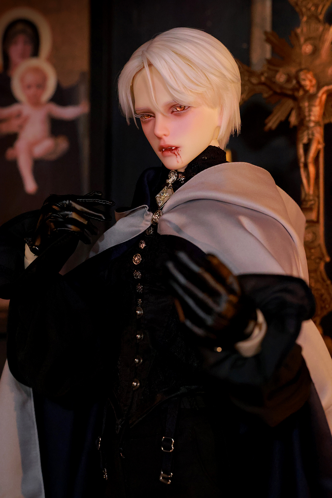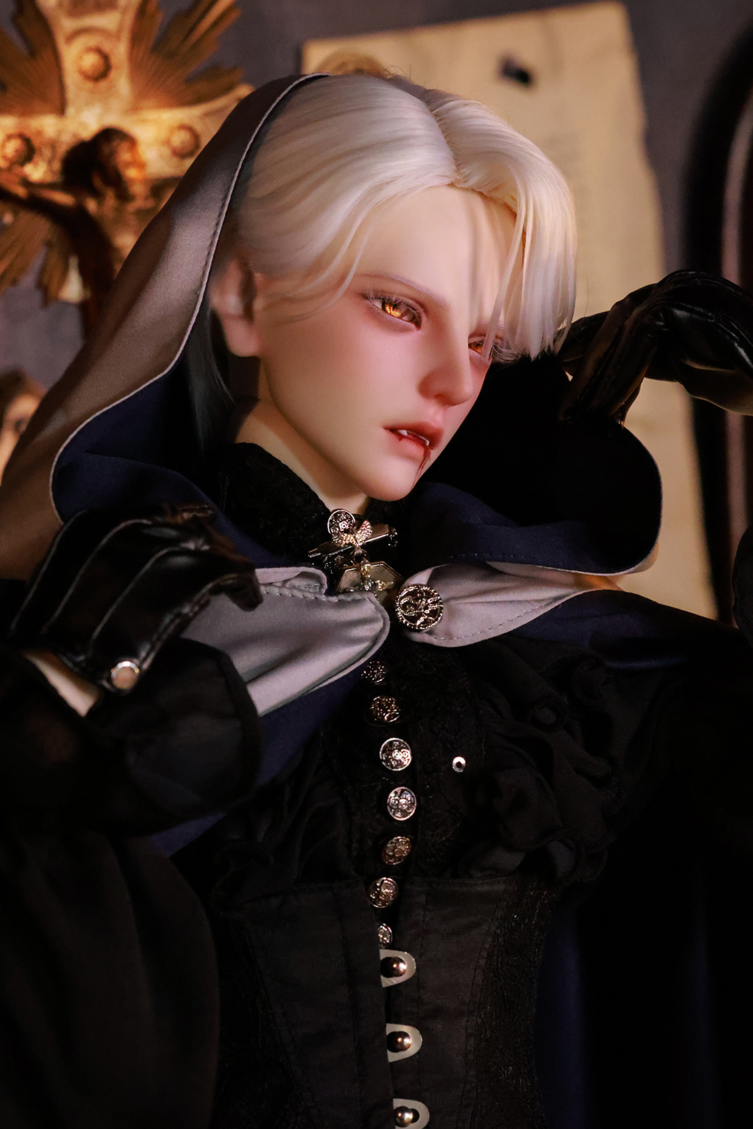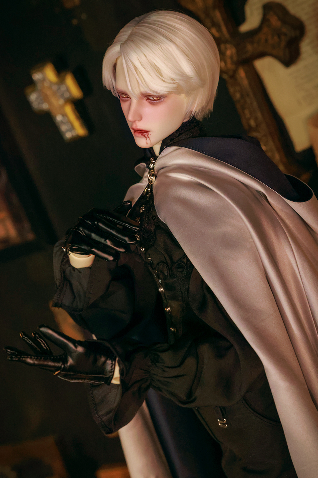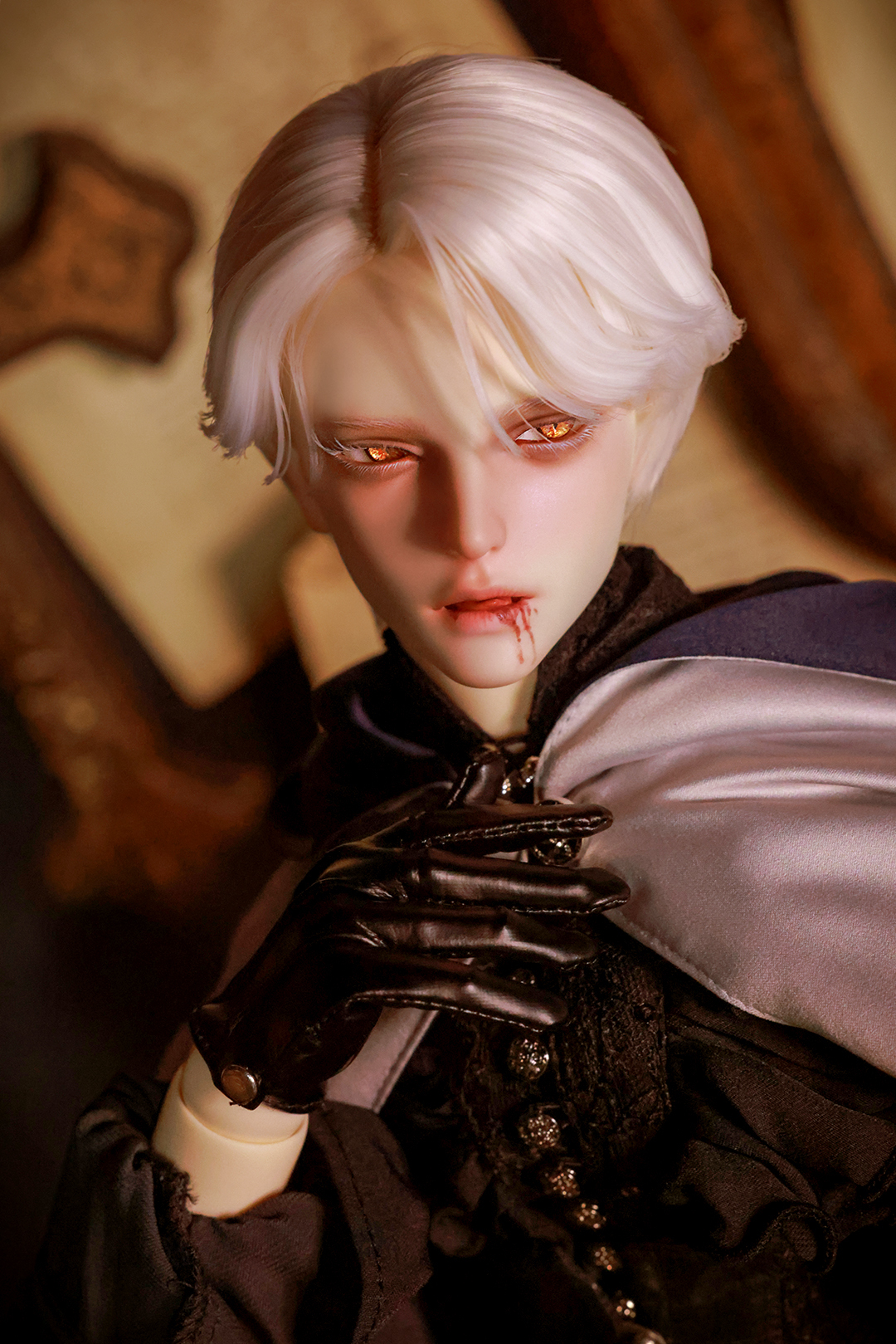 本コラボレーションでは「吸血鬼」をテーマに、尋簡(Xunjian)の持つ端正な造形を、凄艶な姿へと生まれ変わらせました。吸い込まれるような鋭い視線や、人ならざるものを感じさせる神秘的な肌質感。細部に至るまで荒浍氏の美意識が宿る、芸術的な仕上がりを楽しめます。
