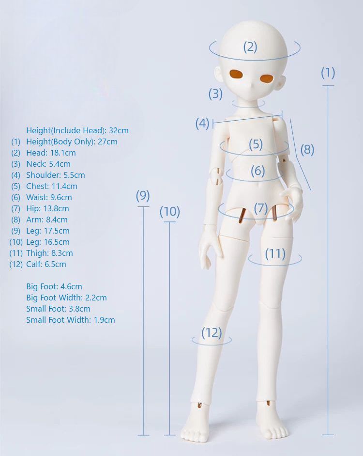 ※ 各サイズはメーカー公式データを記載しています。実際のドール・アイテムには個体差により多少の誤差があります。