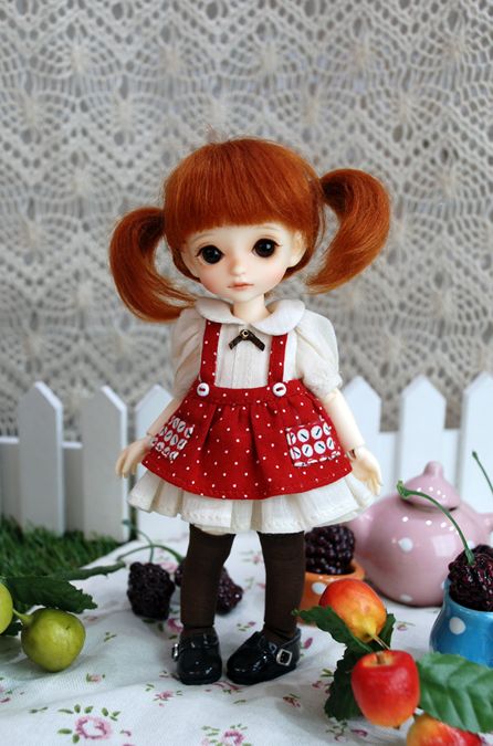 ミニ丈のサロペットスカートのお洋服がとてもキュート♪