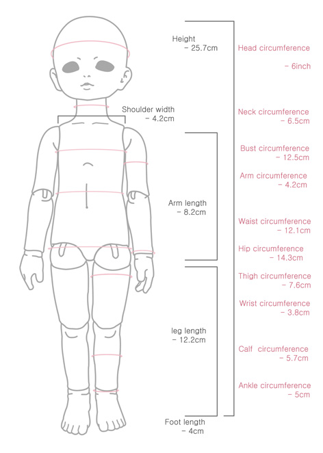 ※ 各サイズはメーカー公式データを記載しています。実際のドール・アイテムには個体差により多少の誤差があります。