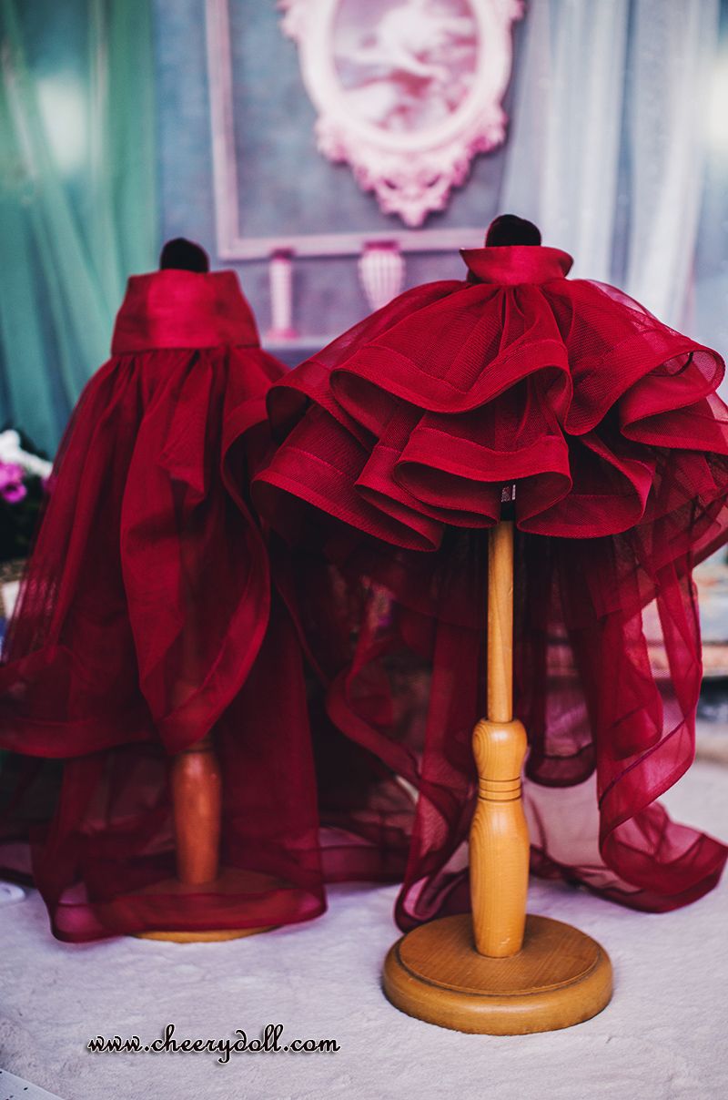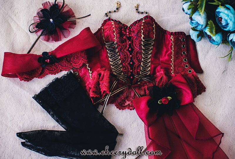 トップ、ショールカラーボレロ、アンバランスショートスカート、ロングスカート、ヘッドドレス、ストッキング、ドレスバックデコレーション
