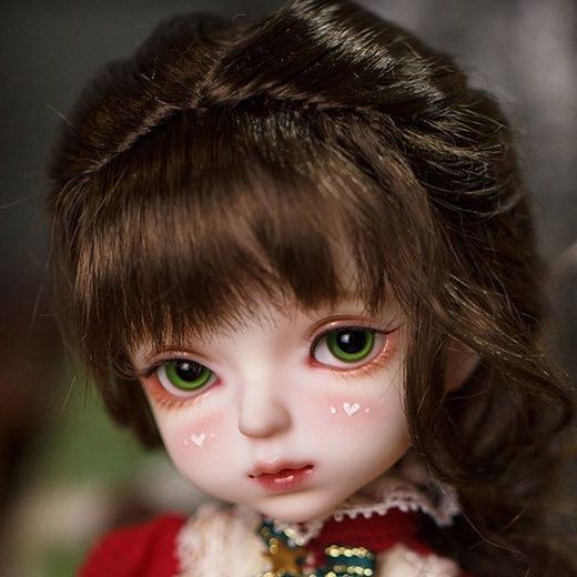 頬に可愛いメイクが施された小さなドールとなっていますよ。